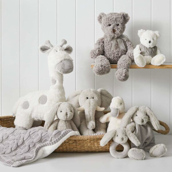 This lovable little bunny is the perfect companion for newborns and toddlers! Made from ultra-plush fabrics and child-safe trimmings, little ones will love the feel of it’s irresistibly soft fur, making it great for cuddles, and it’s beanie bottom will help it sit upright during playtime or when displayed on the shelf. This bunny also loves going on adventures, and can be carried around by it’s floppy ears, which are the perfect size for little hands to hold.