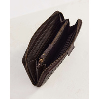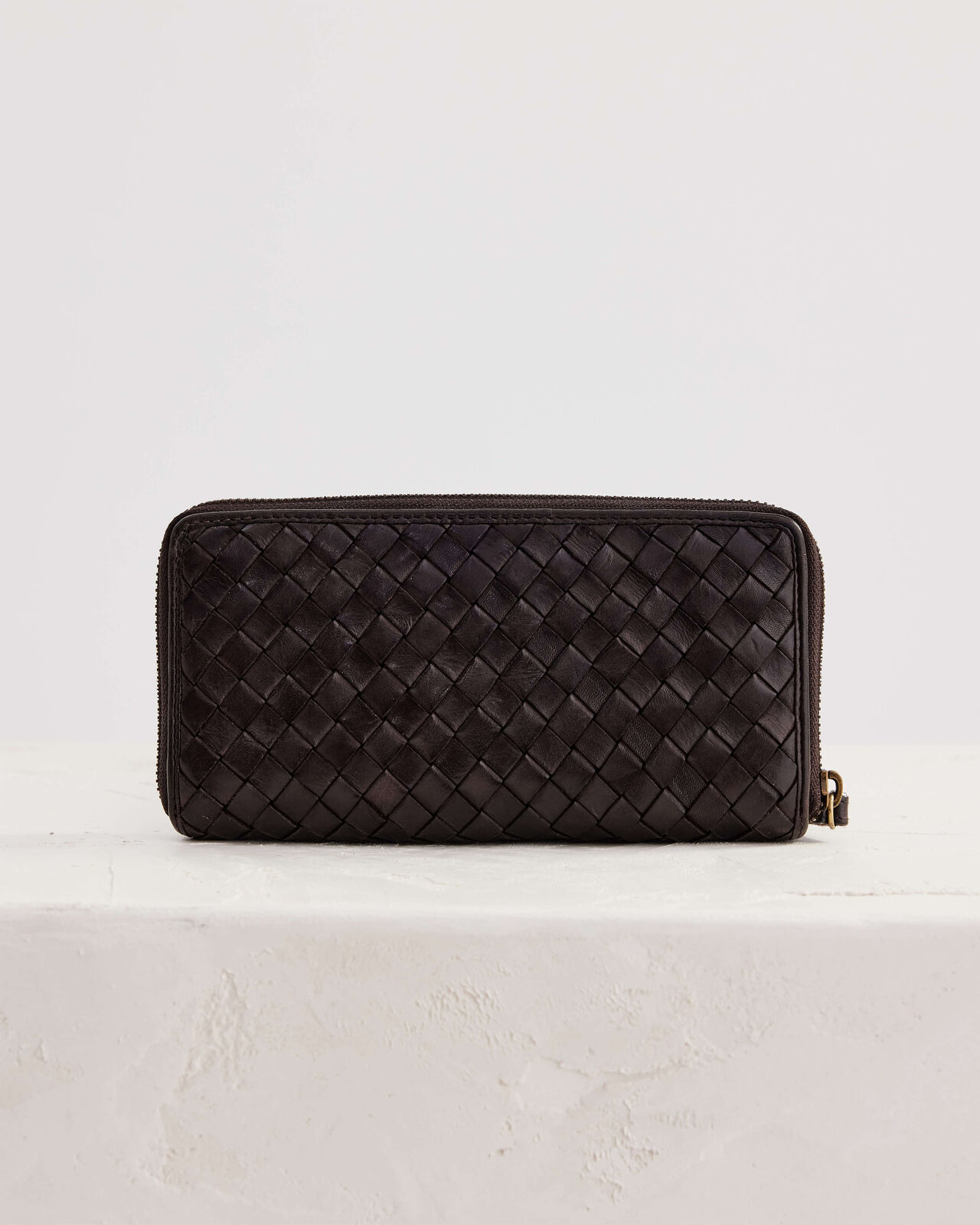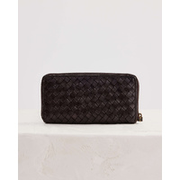The Large Basque Wallet in Chocolate is a large zip wallet made from woven leather. With capacity to fit a standard iPhone and an all leather interior, add some luxury to your daily carry.