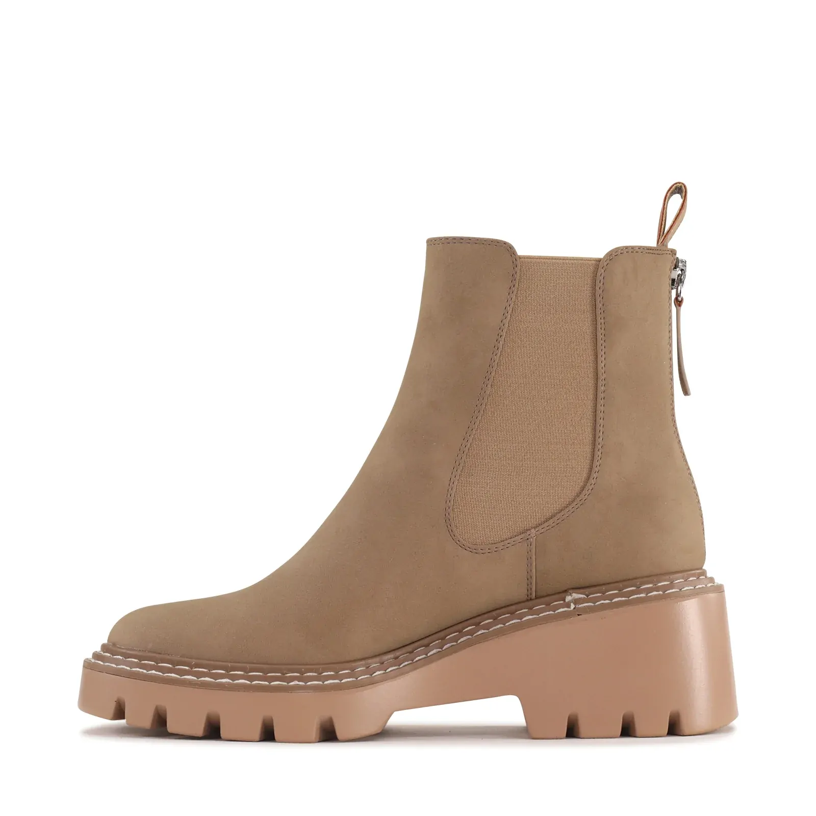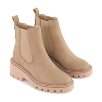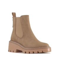 Viana is a modern ankle boot which combines classic Chelsea styling with a bold, contemporary edge. Crafted from manmade leather, it features elastic side panels for a comfortable, flexible fit and a back zip for easy on-and-off wear. The chunky lug sole and contrast stitching add a rugged touch while providing stability and traction, making it as practical as it is stylish. Finished with a rounded toe and elevated platform, this boot brings confident attitude to everyday looks.