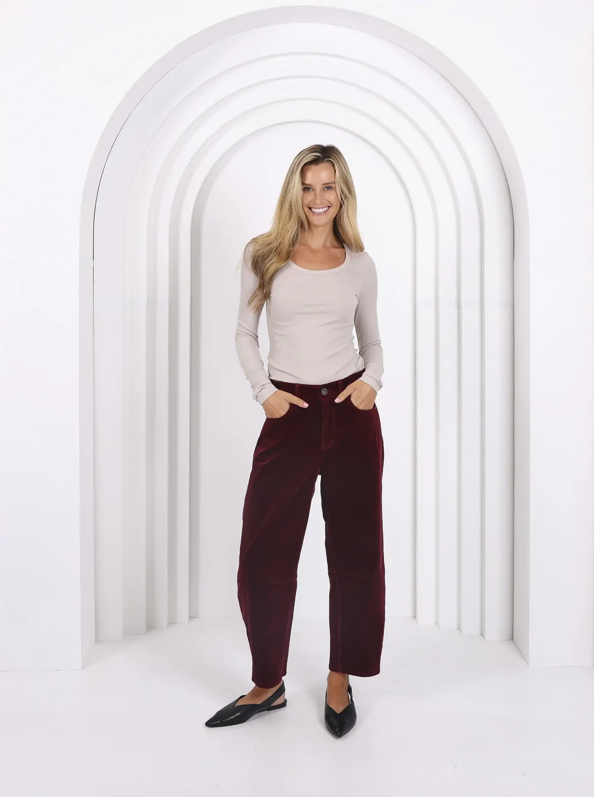 On-trend barrel jeans crafted from plush corduroy with a soft, cozy feel. Designed with a relaxed fit, they feature classic front and back pockets for everyday ease. The barrel shape flatters all body types while keeping your look modern and effortless.