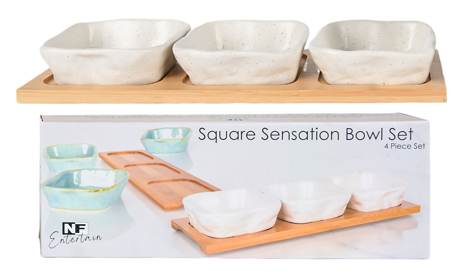 NF Living Square Bowls & Tray Set - SpeckWhite