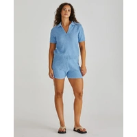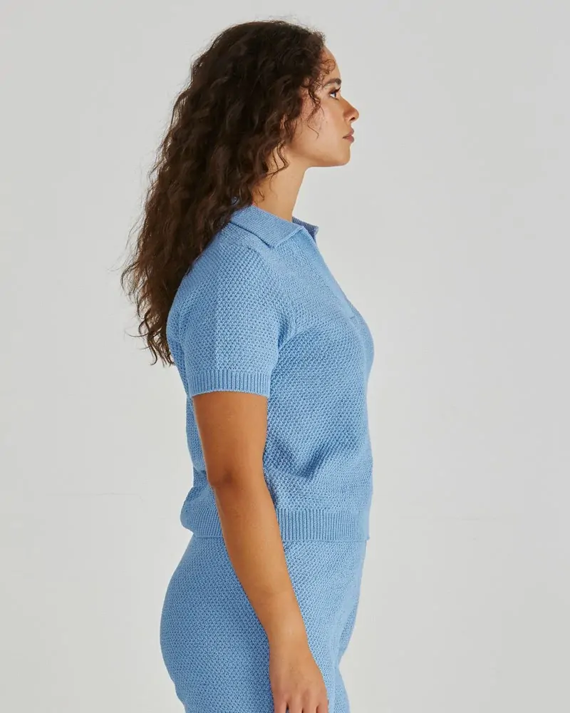 The Aubrie Knit Polo gives off major vintage-sporty energy. Featuring a moss knit stitch and ribbed trims, it’s the perfect mix of classic and cool. Soft and comfortable, it’s designed for effortless wear from desk to drinks. A polished staple with a playful twist.