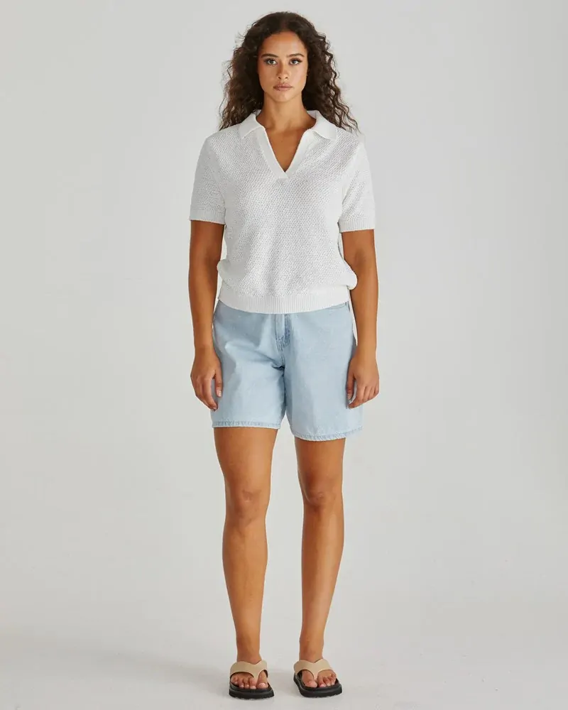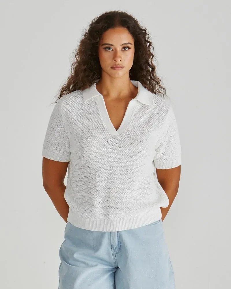 The Aubrie Knit Polo gives off major vintage-sporty energy. Featuring a moss knit stitch and ribbed trims, it’s the perfect mix of classic and cool. Soft and comfortable, it’s designed for effortless wear from desk to drinks. A polished staple with a playful twist.