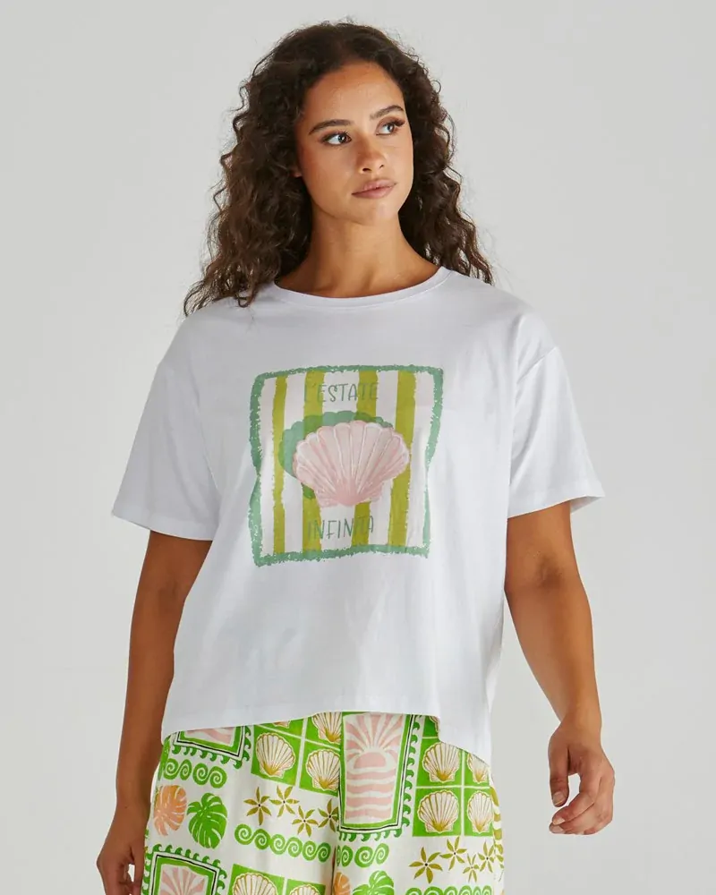 The Cynthia Tee is where comfort meets cool. Crafted from soft cotton jersey in our exclusive print, it features a dropped shoulder for an effortlessly relaxed fit. The kind of tee you’ll reach for again and again. Classic, casual, and just a little bit fun.