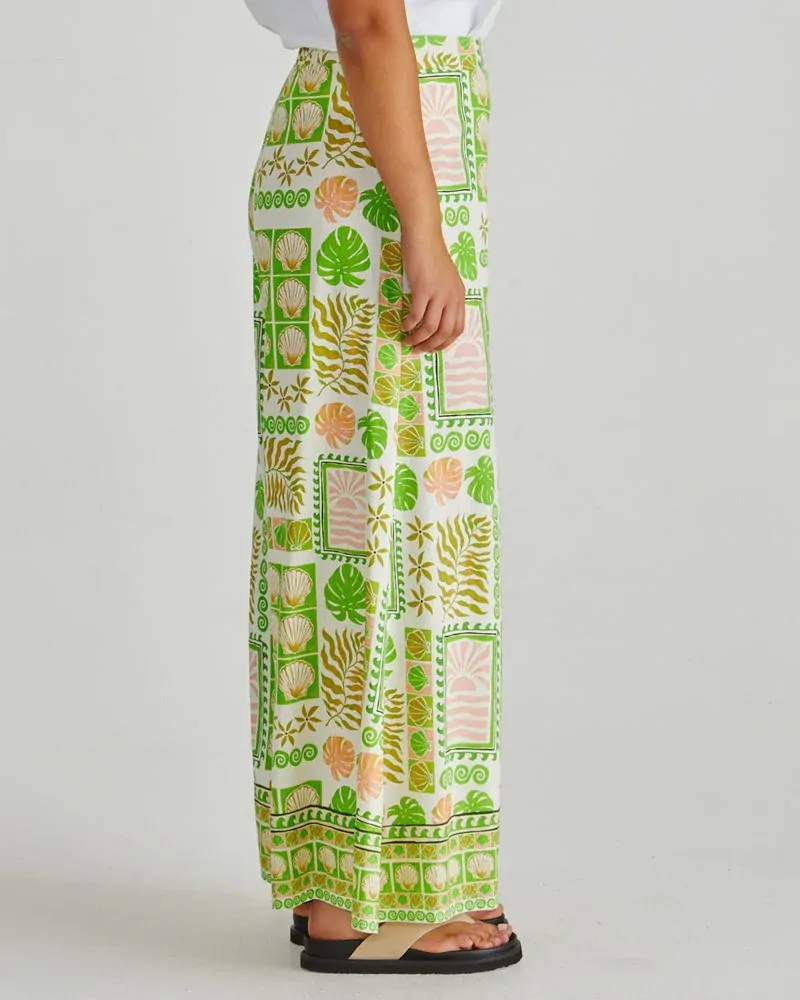 The Emmett Wide Leg Pant brings effortless cool to your summer rotation. Designed in our exclusive print with a flat front and elastic back, it’s made for comfort that still looks polished. Pair with the matching top for an on-trend statement set.