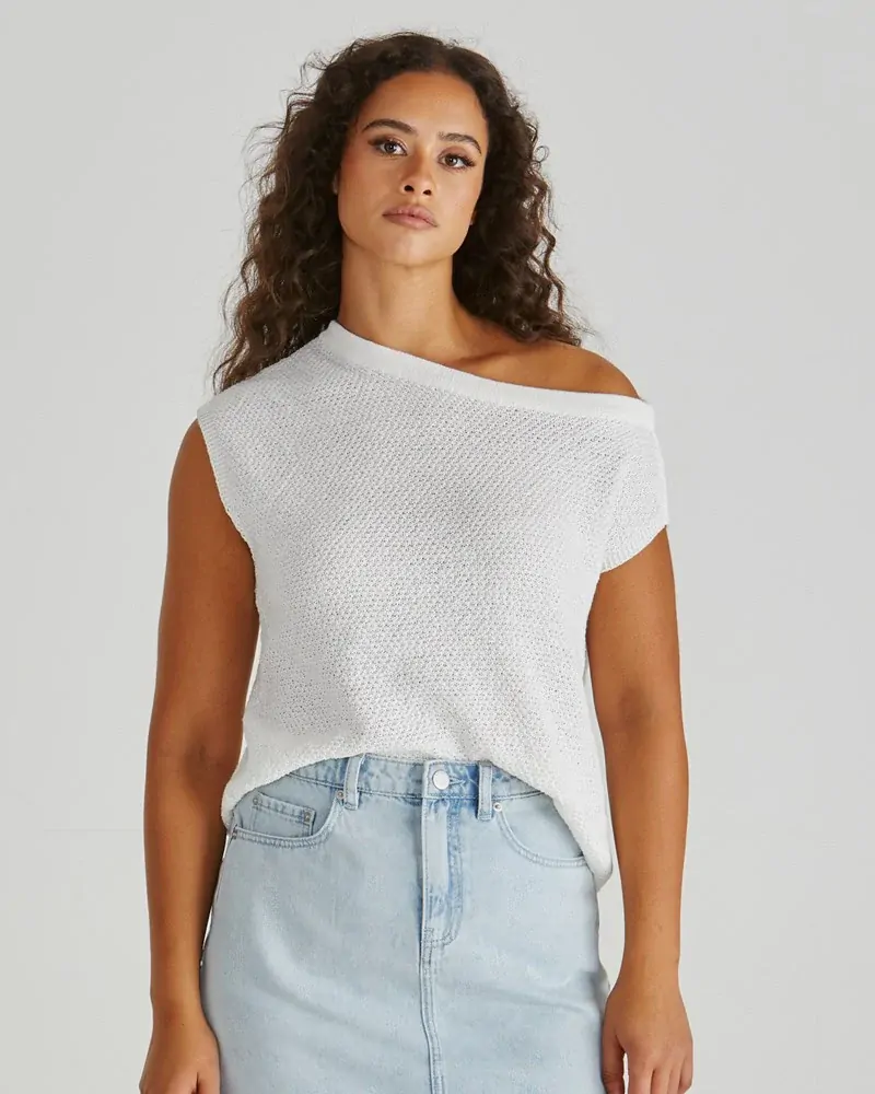 The Jaci Knit Top is minimal with a twist. Featuring an asymmetrical neckline and soft moss knit, it’s both flattering and fun. Designed for comfort with an elevated edge. The perfect top to take you from brunch to night out.