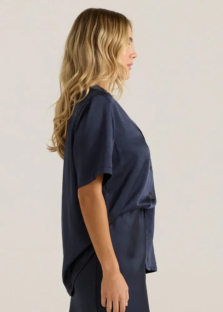 Luxe satin fabric offers smooth sophistication, while a camp collar and side splits keep things feeling relaxed and modern. Dress it up or down — this shirt holds its style either way. It’s the kind of piece that brings instant confidence.