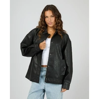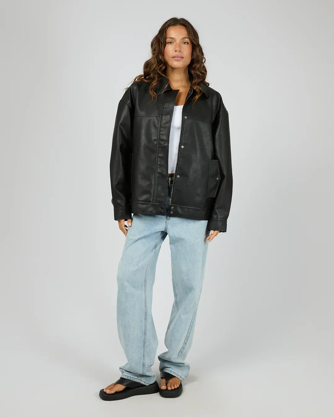 Trust us you need this jacket, meet the Ayla Jacket! Made from a pebble texture faux leather, this oversized fit jacket features a concealed functional zipper with snaps and yoke details. Style over your favourite denim and basics or dress up with the matching Ayla Mini Skirt.
