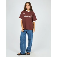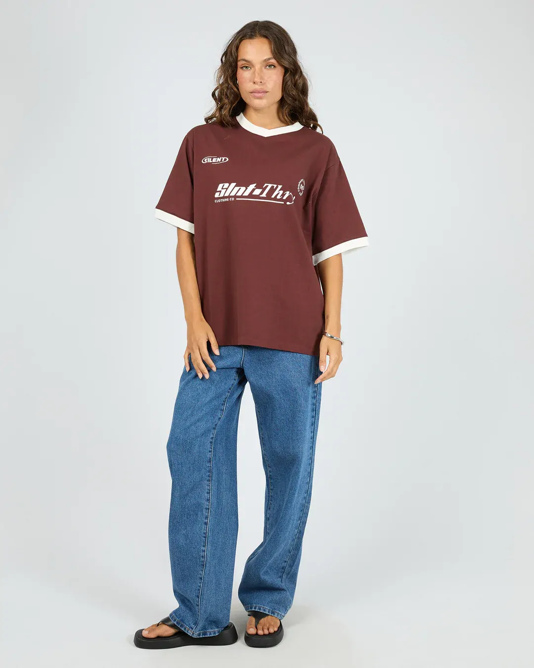 The Carson Tee will elevate your wardrobe this autumn! Made from a heavy weight cotton jersey, this tee features and oversized fit with contrast sleeve panels, v neckband with branded chest print. Pair back with your Jade Baggy Jeans for the ultimate casual but cool girl look.
