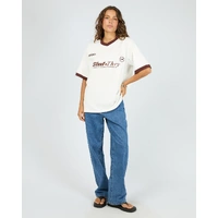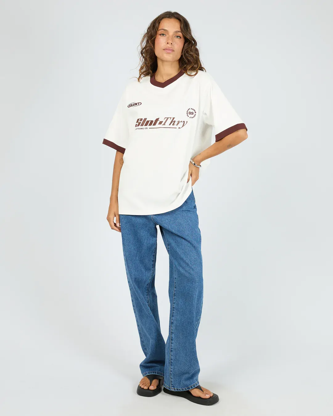 The Carson Tee will elevate your wardrobe this autumn! Made from a heavy weight cotton jersey, this tee features and oversized fit with contrast sleeve panels, v neckband with branded chest print. Pair back with your Jade Baggy Jeans for the ultimate casual but cool girl look.