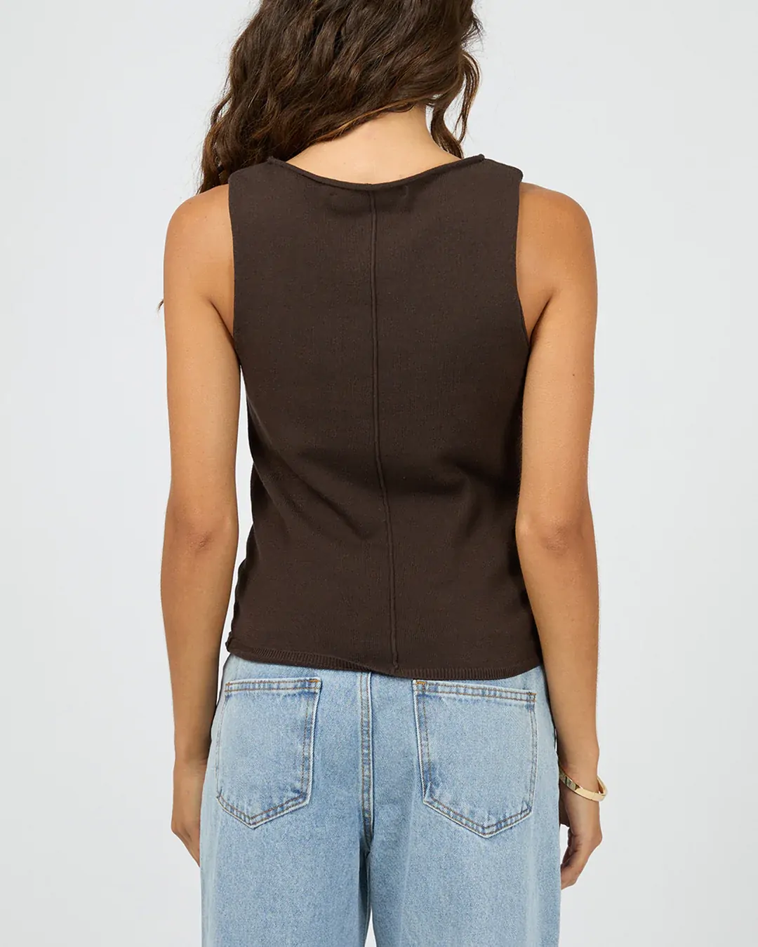 Looking for an elevated basic that can take you from the beach to the bar, look no further than our Ellis Tank Top. Made from a subtle stretch knit this tank features a high boat neckline with seam detail down front and back, as well as rolled edges. Available in 2 summer staple colourways, pair back with your favourite denim and be ready for where ever the day takes you.