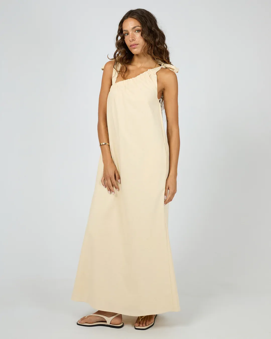 Introducing the Lily Maxi Dress, your new summer go to! Made from a cotton linen blend, this dress features elastic tie, with pockets and is fully lined. Wear her two ways, you can tuck the strap in for a one shoulder moment! Pair back with your favourite sandals and jewellery for an effortless beach to bar outfit.