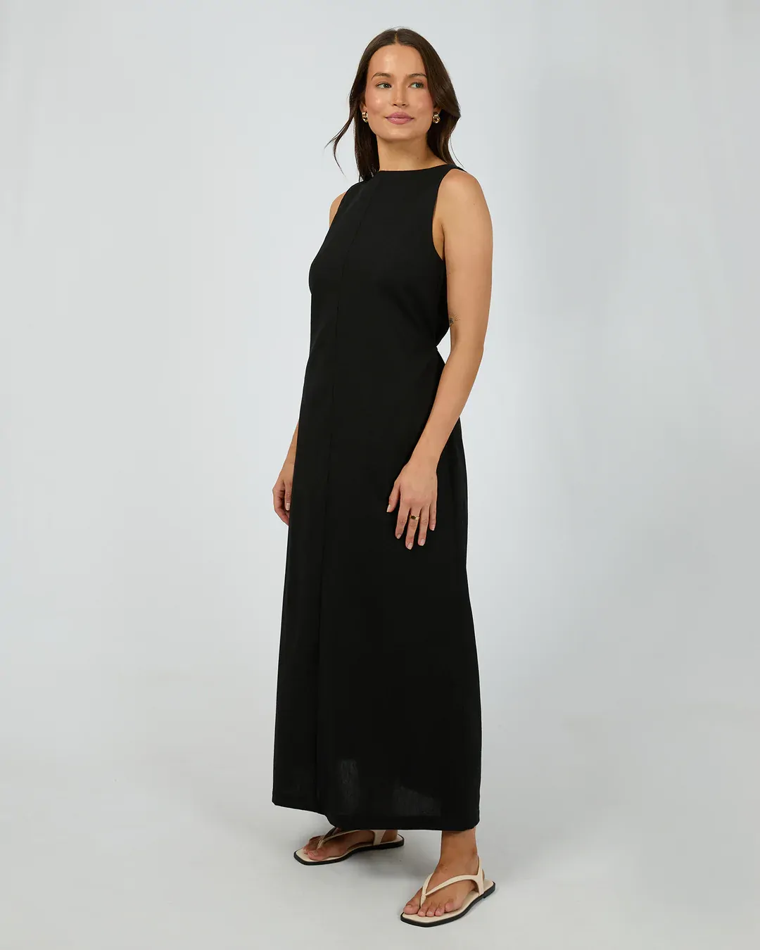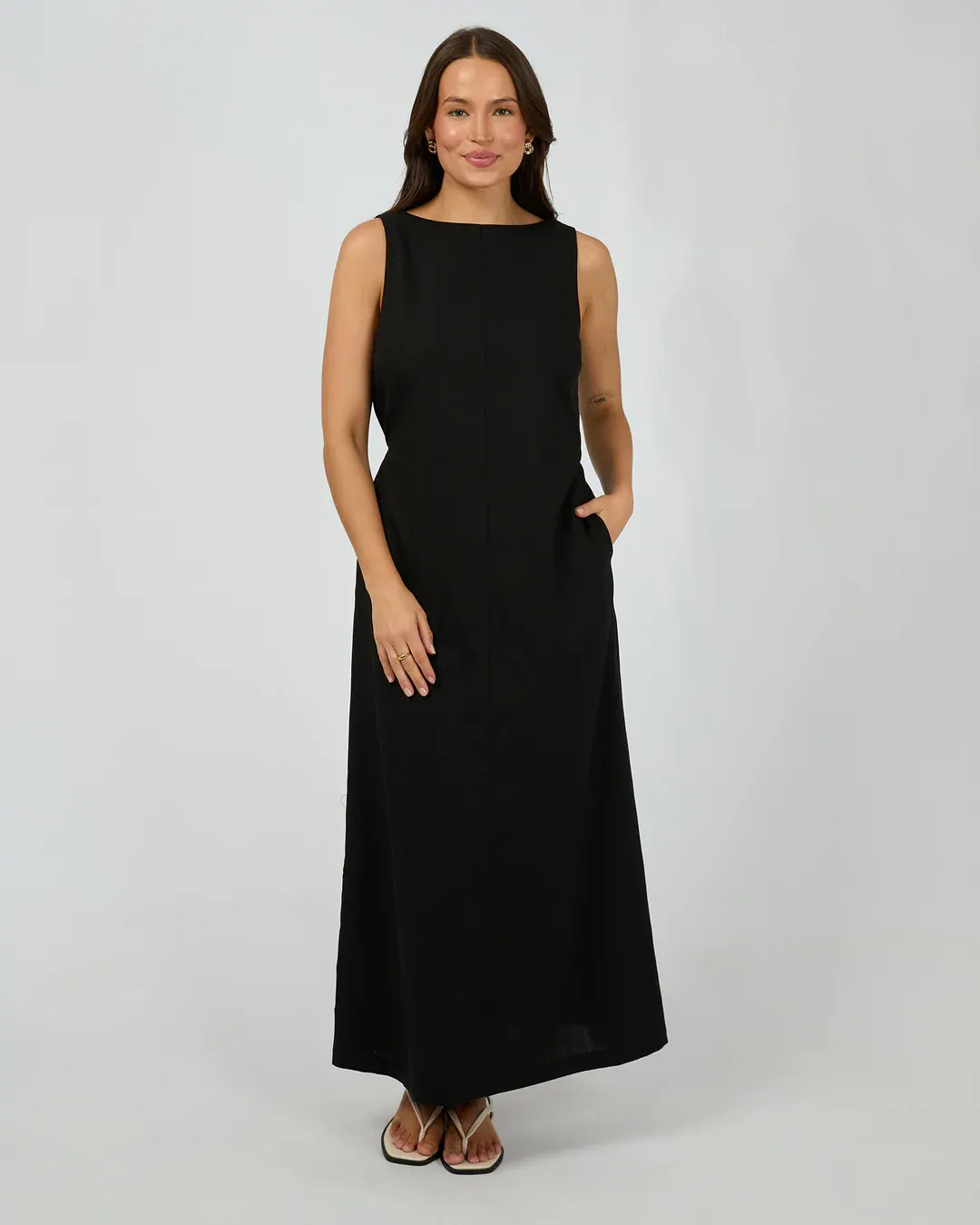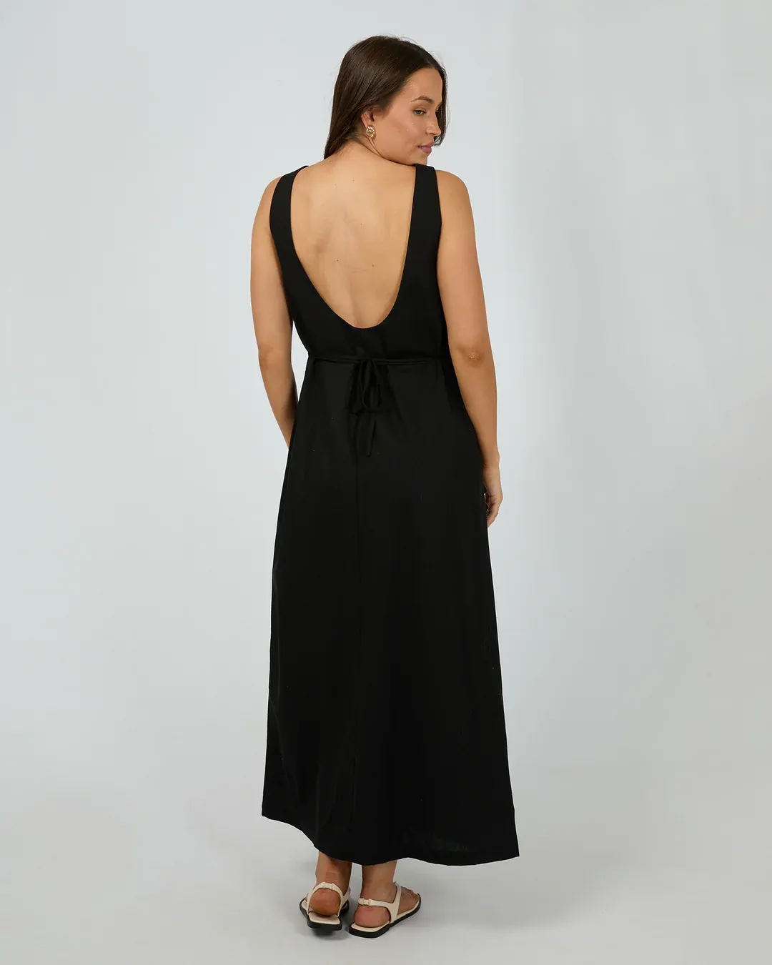 The Tallow Tie Maxi Dress is a must-have in any wardrobe. Made from a soft but structured linen viscose blend, this dress features a scooped back neckline, waist tie, and flattering seam detail. Style back with your favourite sandals and be ready to go from the beach to the winery!