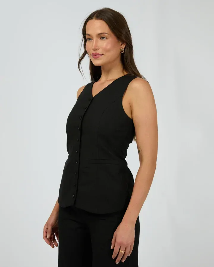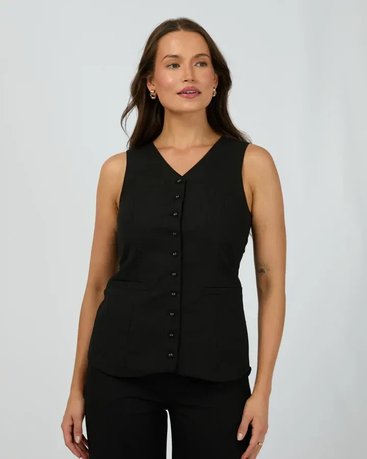 Add the Tallow Vest to your transseasonal wardrobe this spring summer! This linen blend vest features a button down front, mock pockets and a flattering scooped hem. Pair this back with the Tallow Pants for a dressy look or style back with your favourite jeans for a more casual option.