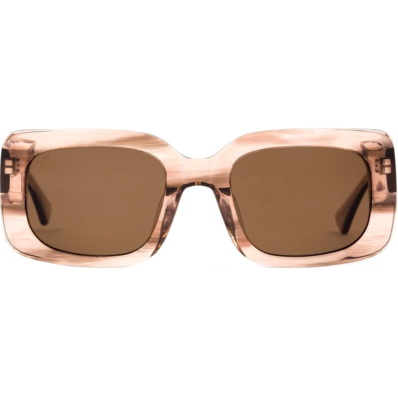 Embrace the nostalgic vibes of 1970s Italy in the Sito Indi sunglasses. Boasting a retro-inspired design, this sightly large square silhouette beautifully captures the essence of a cherished bygone era. Complete with soft round edges, this biscotti-coloured frame has been handcrafted using plant-based acetate made from natural wood pulp and cotton seeds that showcases the brand's commitment to a more sustainable future. Adorned with high-quality brown polarised CR 39 lenses, the Indi sunglasses provide exceptional UV protection against bothersome surface glare while providing unmatched clarity and heightened contrast of your surroundings.