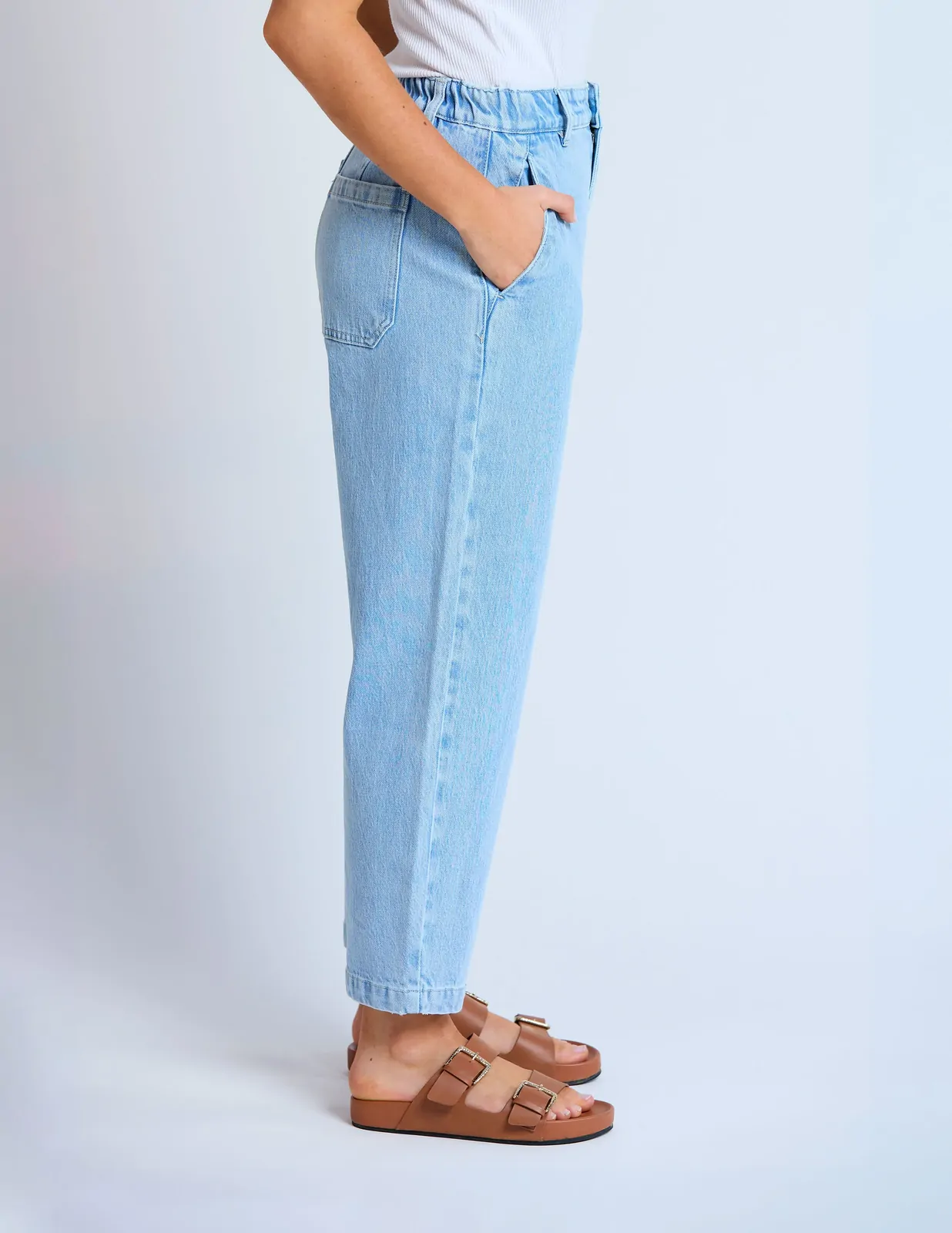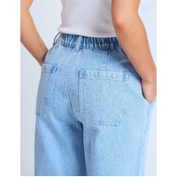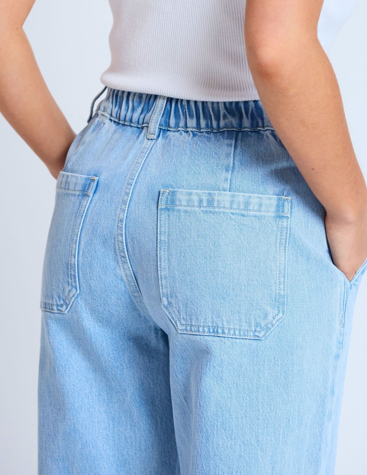 Relaxed fit ankle length jean with elasticated back waist and back patch pockets