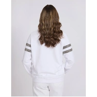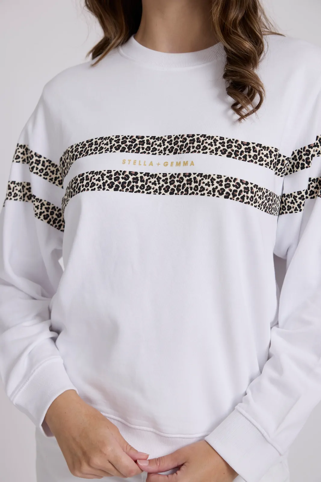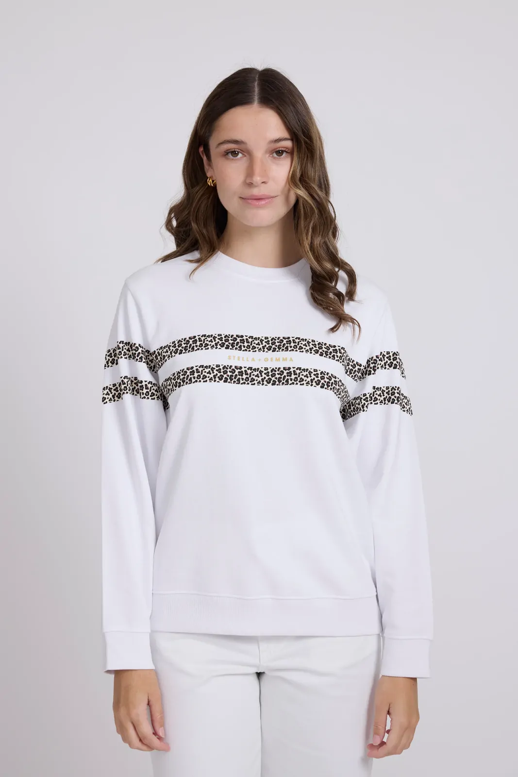 Relaxed crew neckline sweater with set-in sleeves and rib cuffs and hemline
