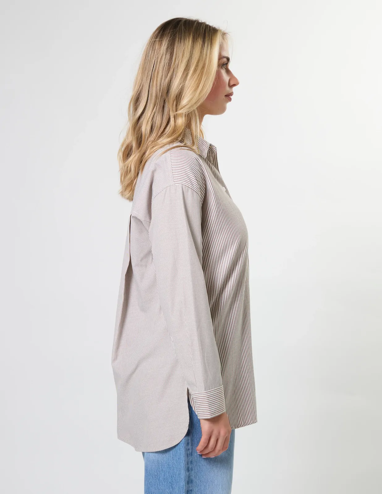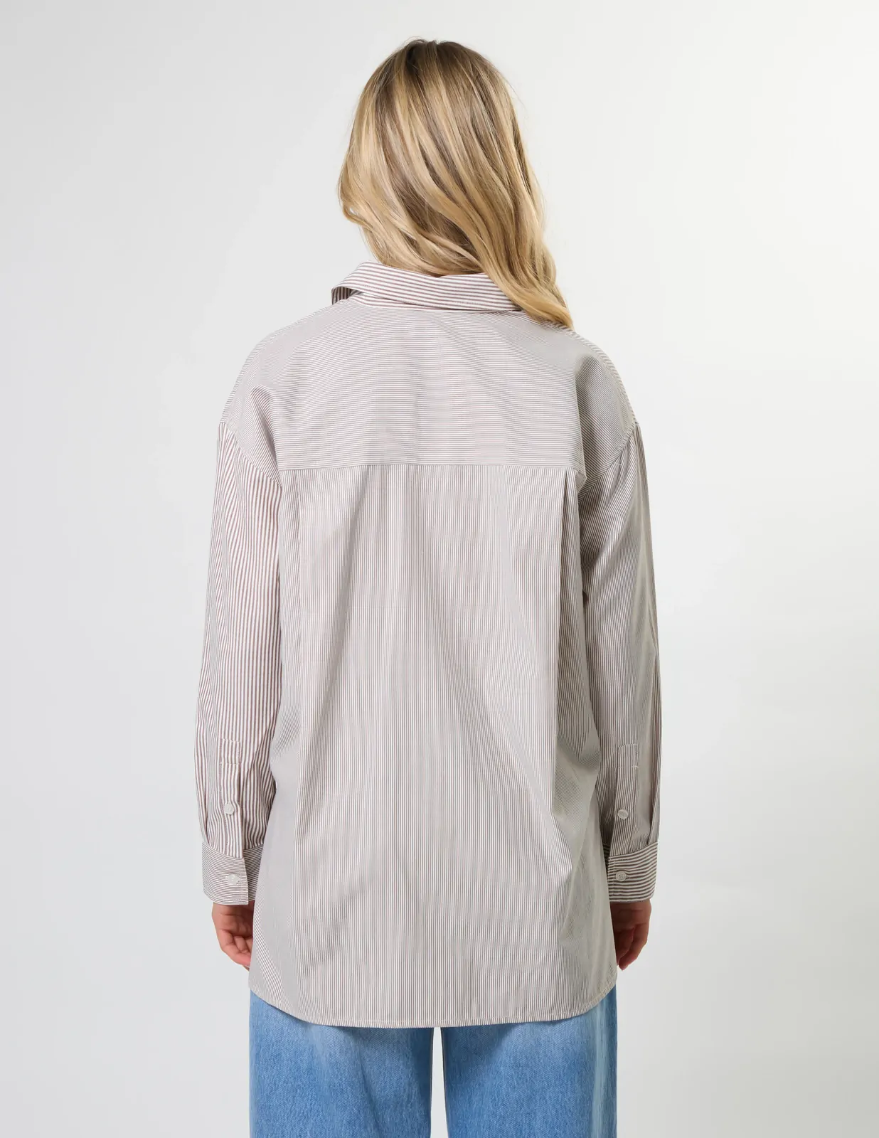 Mini Stripe relaxed fit classic shirt with chest pocket and stripe panel blocking.