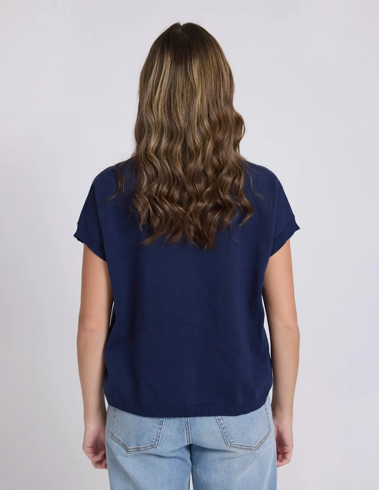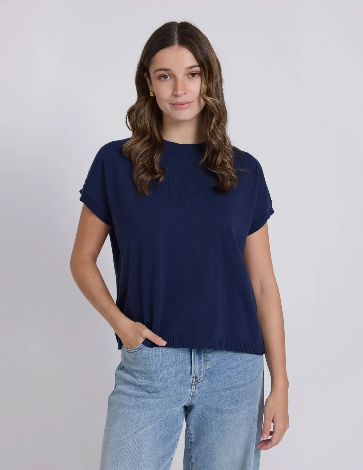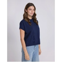 Crew neck basic knit top in jersey knit with fine ribbed trims.
