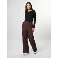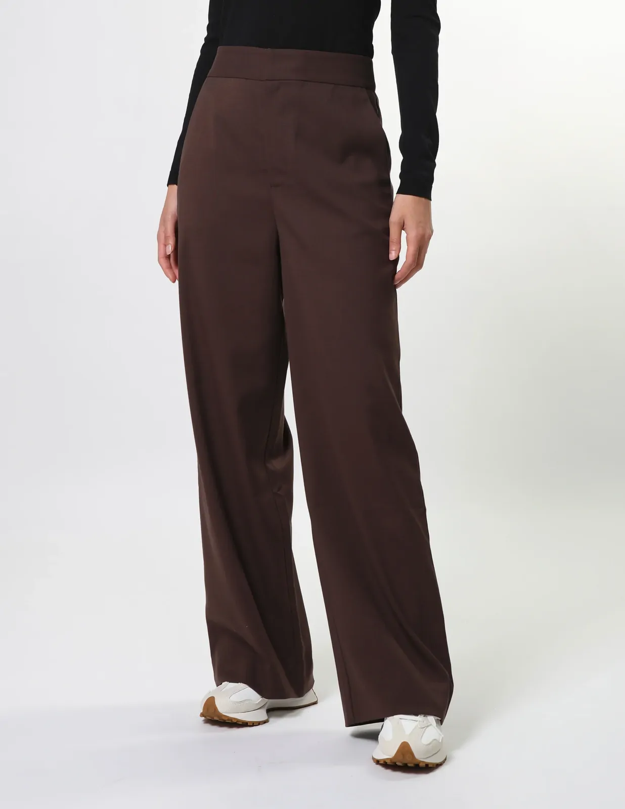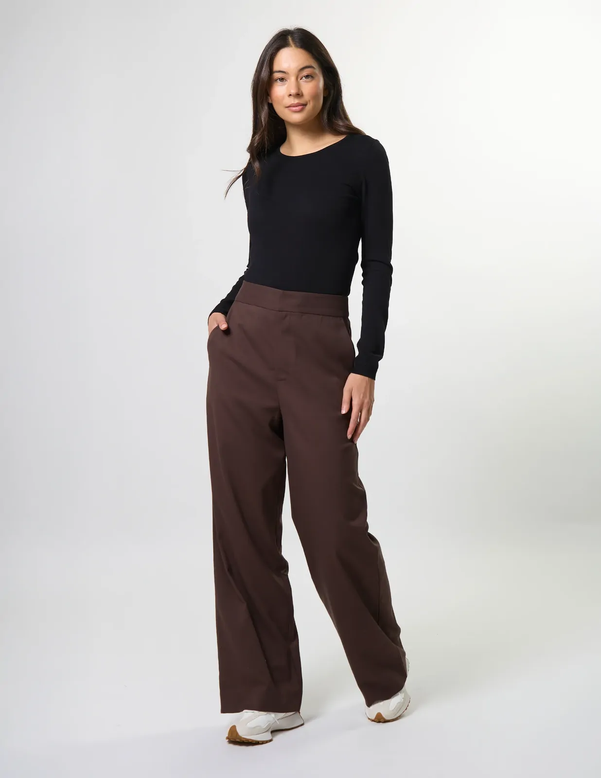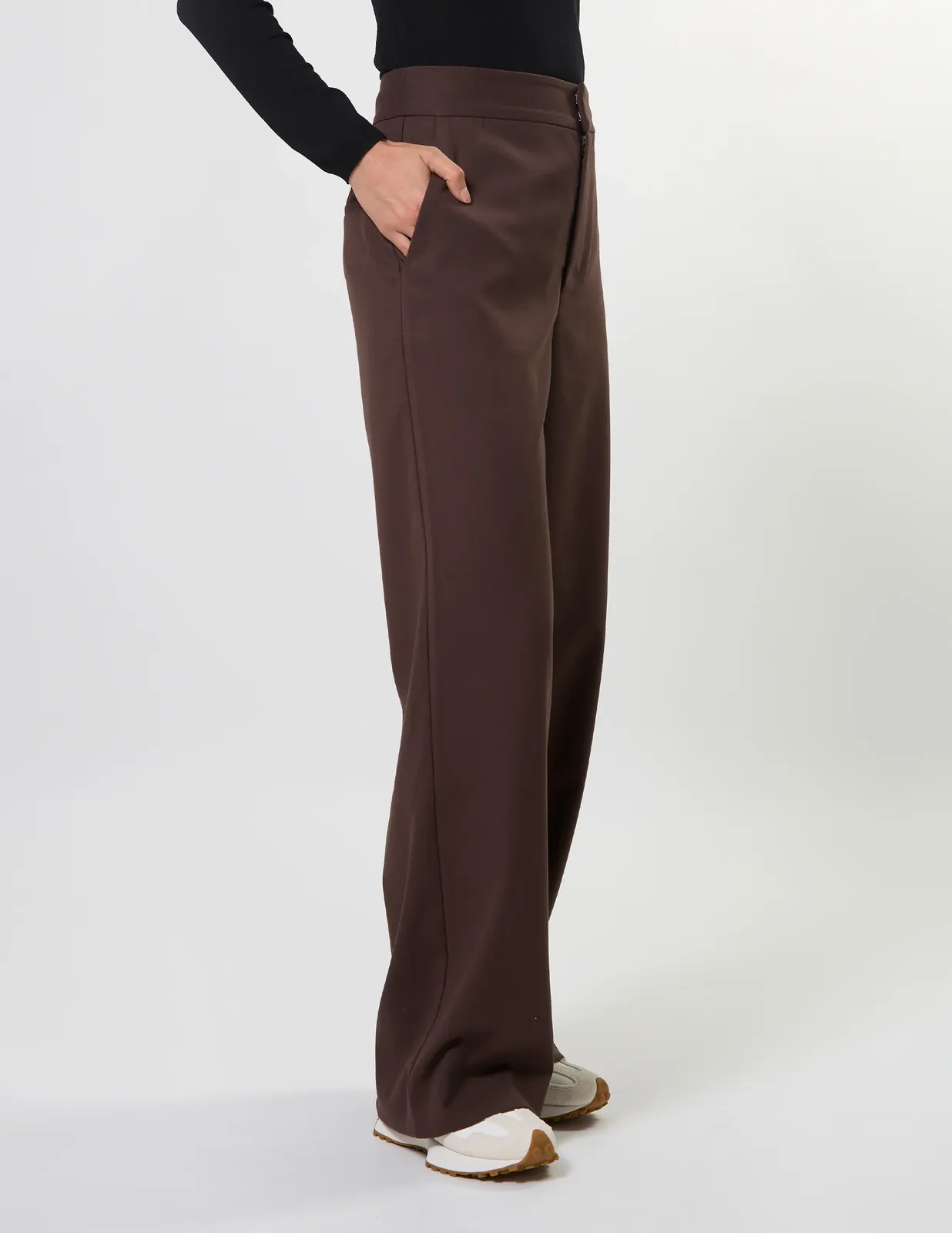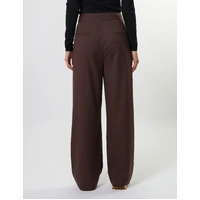 Relaxed fit tailored pant with concealed button and hook and eye closure waist, side angle front pockets back mock back welt pocket detail.