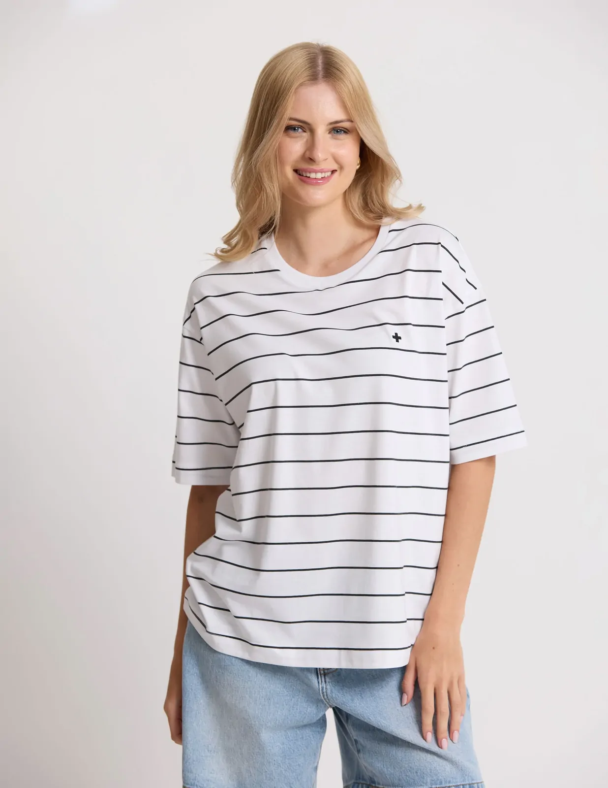 Relaxed boxy fit crew neck with drop shoulder sleeves