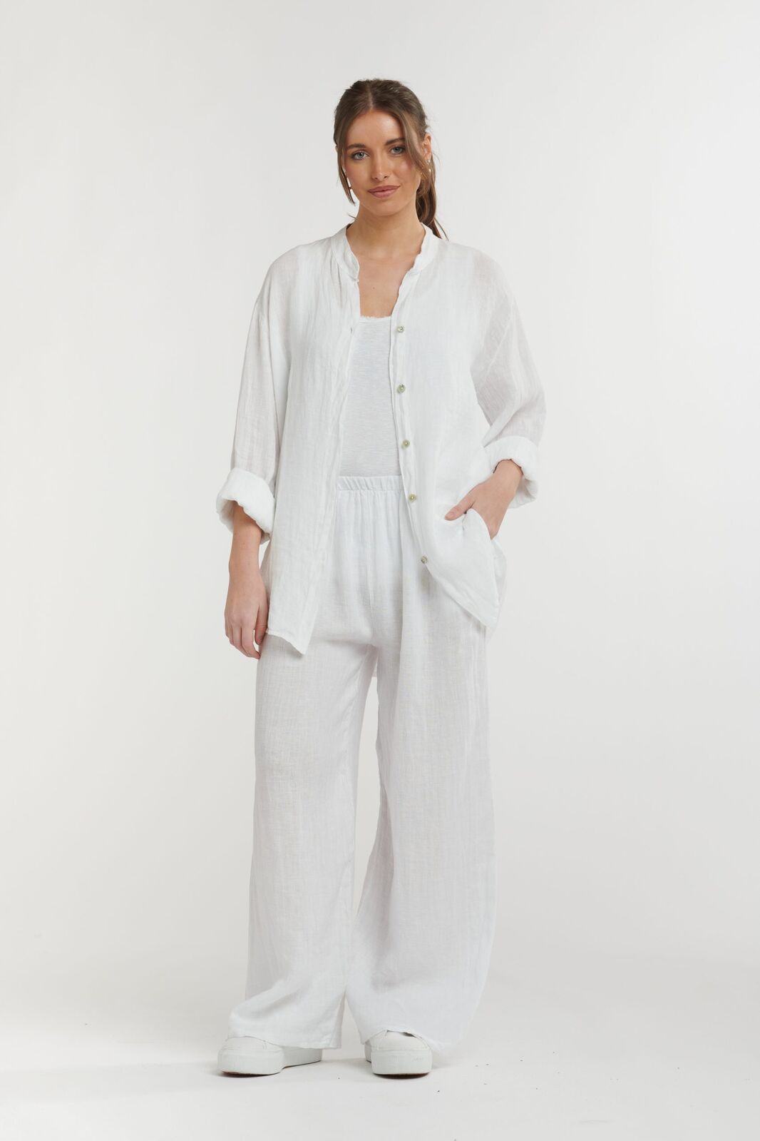 Urban Luxury Linen Shirt - White  One Size